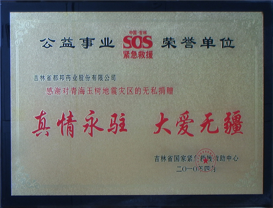 公益事业荣誉单位-真情永驻 大爱无疆