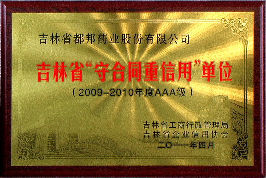 2009-2010年度AAA吉林省“守合同重信用”单位
