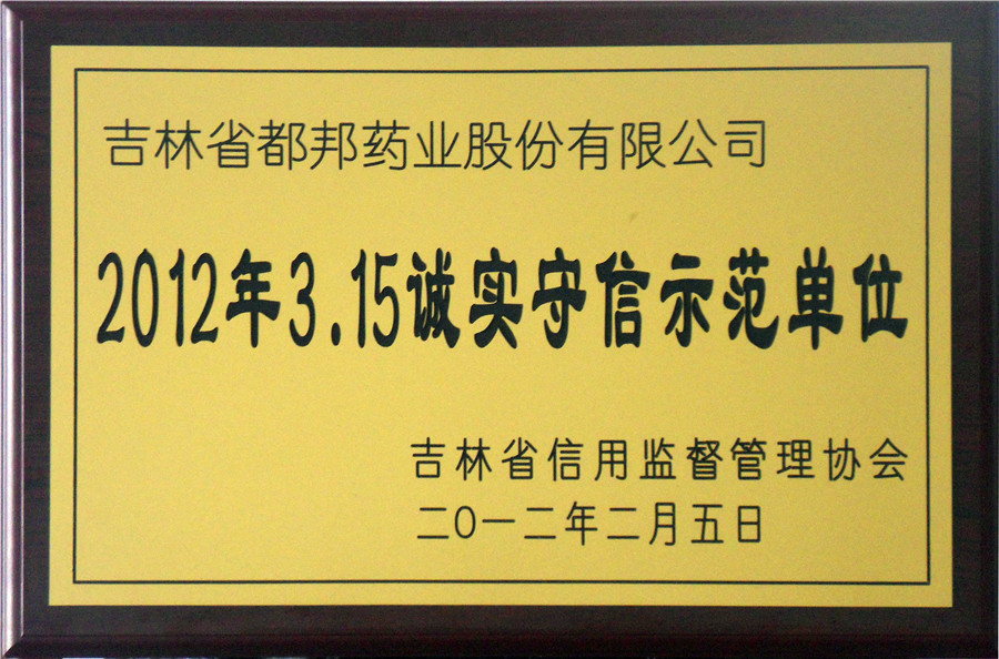 2012年度3.15诚实守信示范单位.